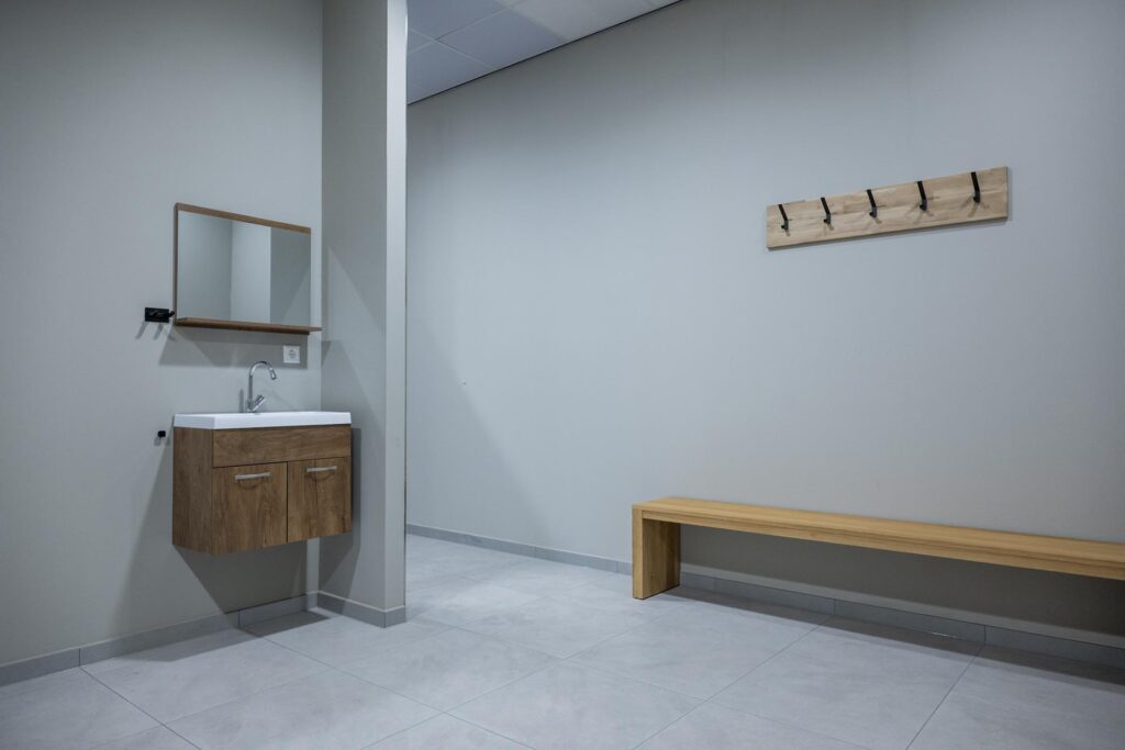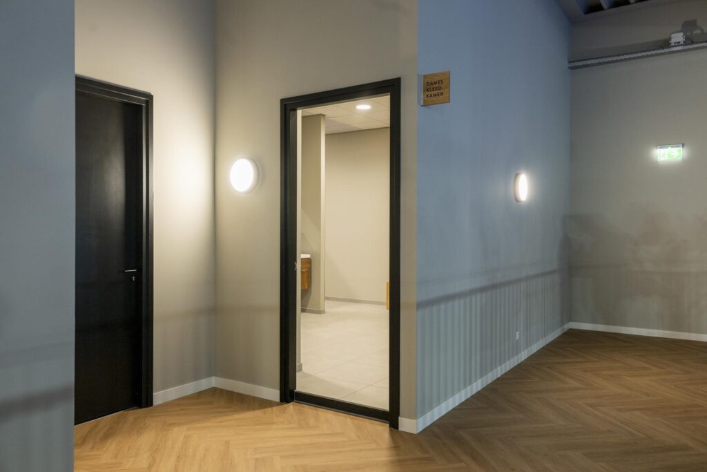 Na afloop is een verfrissende douche heerlijk. Voor zowel de dames als de heren hebben we deze ruimtes ook op de eerste verdieping gemaakt. Met wederom Plaza Padel elementen, zoals de tegels, de bankjes en de kapstokken. En om iedereen een behaaglijk gevoel te geven is er in het gehele pand een systeemplafond mét infraroodpanelen gemaakt.